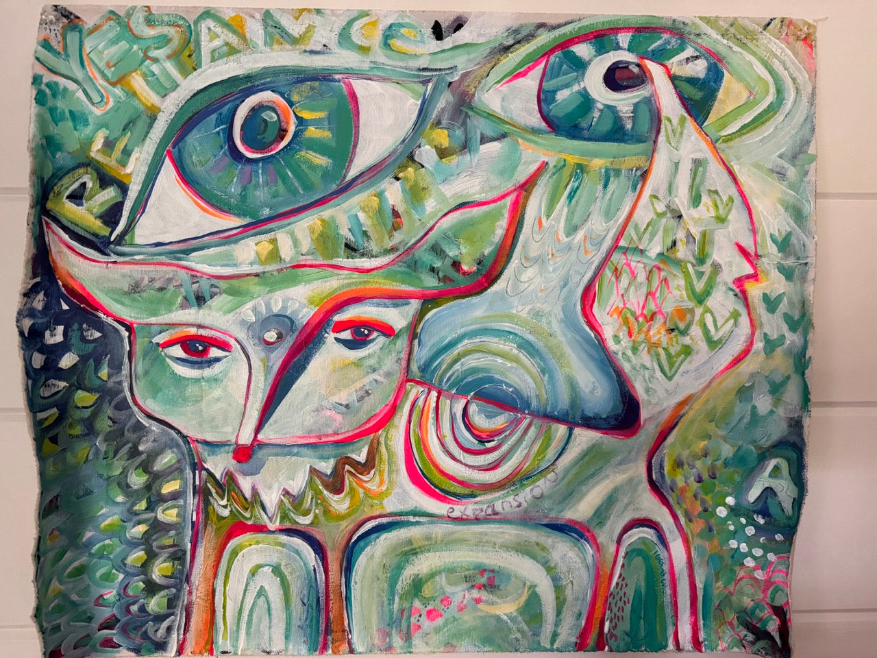 Eyes all around, guiding, protecting and offering you their crystalline vision as you blaze your own trails like fox. Your fox ally is playful and divinely intelligent. Meditate with this all seeing foxy ally when you want to understand your next step, the nature of the path ahead, or which direction would serve you best to focus upon. I ADORE this fox and trust that the one with eyes to see and the courage to follow a unique path will be magnetized to her. *Unstretched Canvas can be hung directly onto the wall, attached to a narrow wood piece along the top and hung that way or framed, floating in a picture frame. I love the rawness of this display!